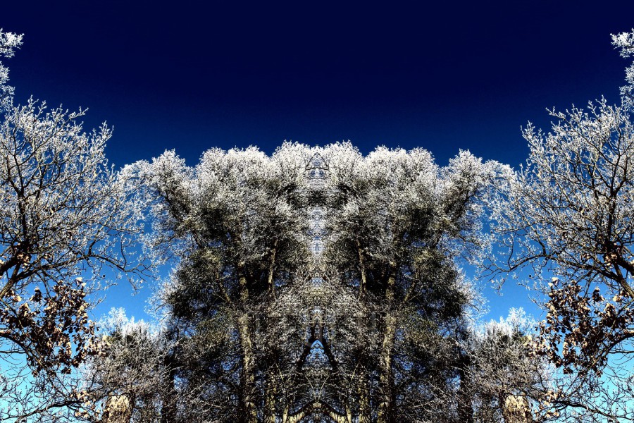 Look closely and you will find. Everyone will see something different. In some pictures there are more than one monster. It is fact, that our brain will look for a face or a pattern in everything from the moment we are born. In neuroscience this phenomenon is called "Pareidolia". We perceive familar patterns where there is actually nothing. Much like some pattern recognition machine. It is sort of automated. Not only the human brain is able to do that, but also computers. This simple mirror effect creates sometimes beautiful and sometimes scary patterns, that look like creatures. And the symmetry created by this effect, makes some good looking pictures even without any monsters sometimes. :)